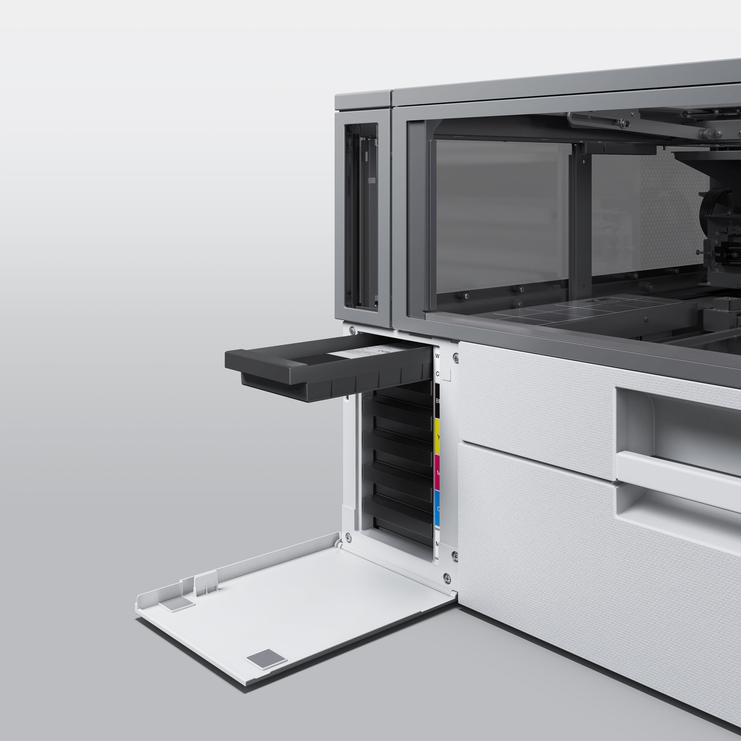 inspirado en diseñadores galardonados, que muestra un exterior minimalista con una vista cautivadora del preciso proceso de impresión.
